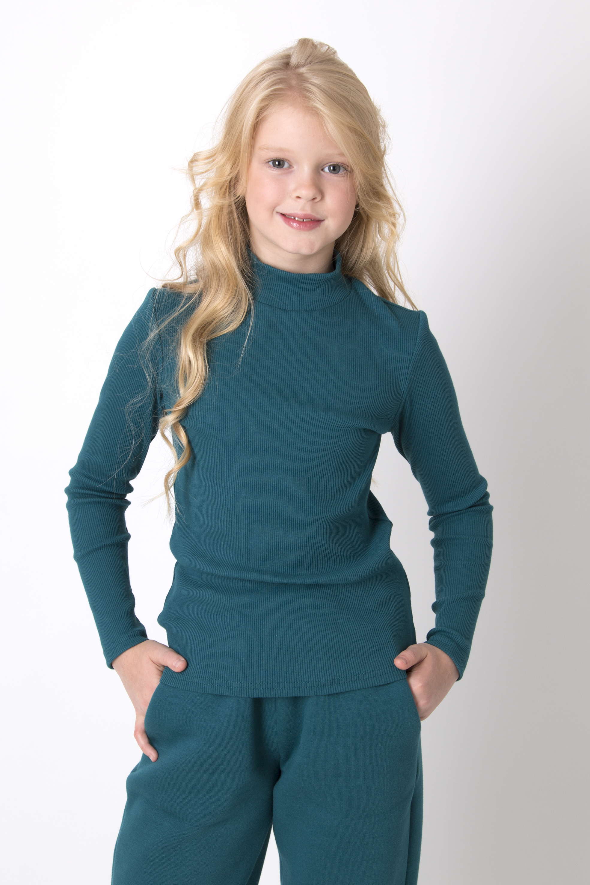 Гольф з трикотажу в рубчик — зручна й базова річ у гардеробі. Прилеглий крій підкреслює силует, а довгі рукави додають практичності. Висока горловина додає теплоти та затишку. Добре поєднується з різними речами — від штанів до спідниць.