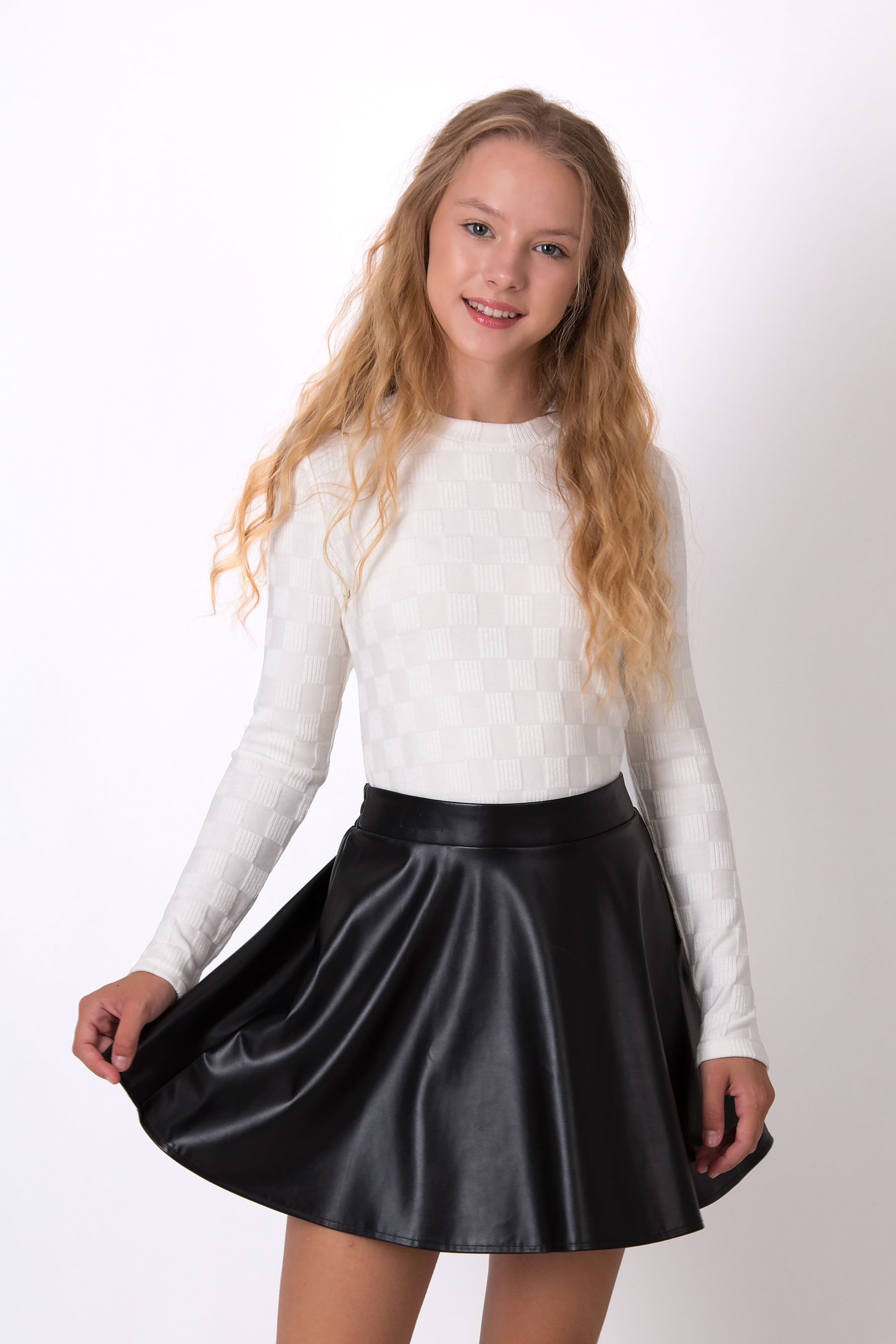 Лонгслів із трикотажу ангора з фактурним геометричним візерунком. Модель м’яка та приємна до тіла, з класичним приталеним кроєм. Гарно поєднується як зі штанами, так і зі спідницями чи жакетом — універсальна база на щодень.