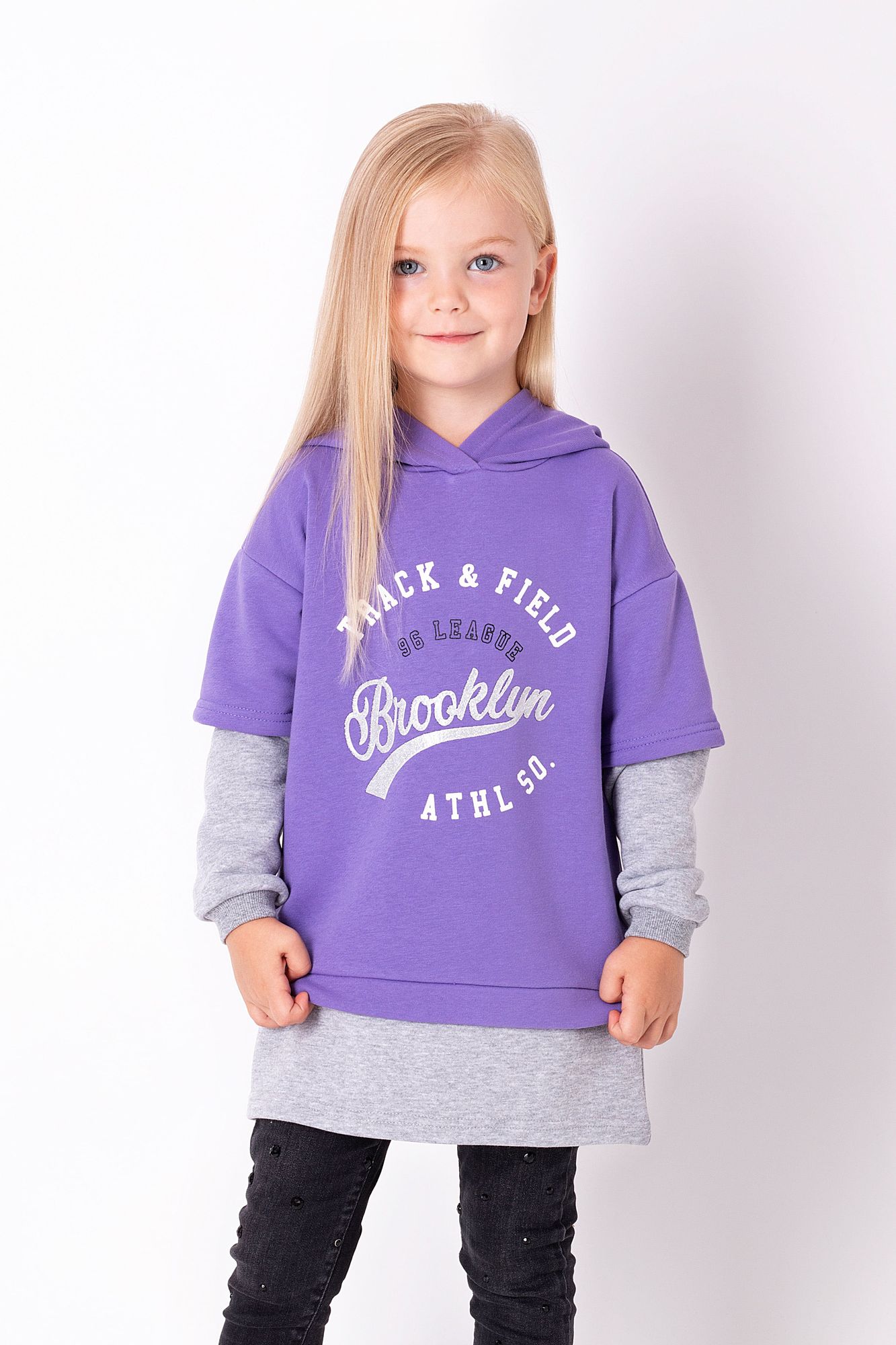Оригінальна туніка з капюшоном. Контрастні елементи рукавів і низу створюють ефект поєднання кількох речей — виглядає стильно. Спортивний принт на грудях додає характеру, а капюшон доповнює повсякденний стиль.