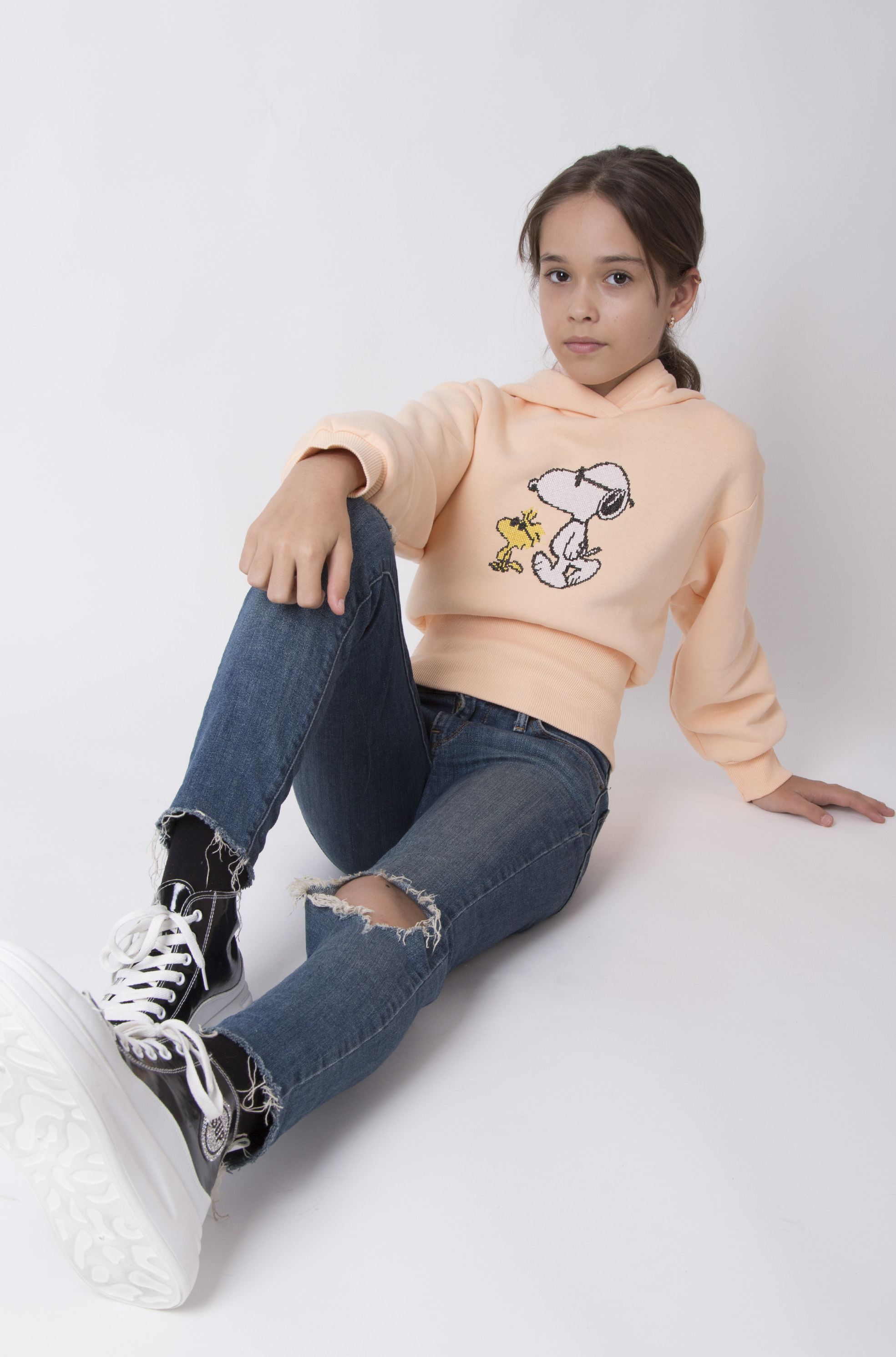 Худі з трикотажу з капюшоном і стильним персонажем. Модель зі зручними манжетами, м’яка та приємна до тіла — чудовий вибір на кожен день.