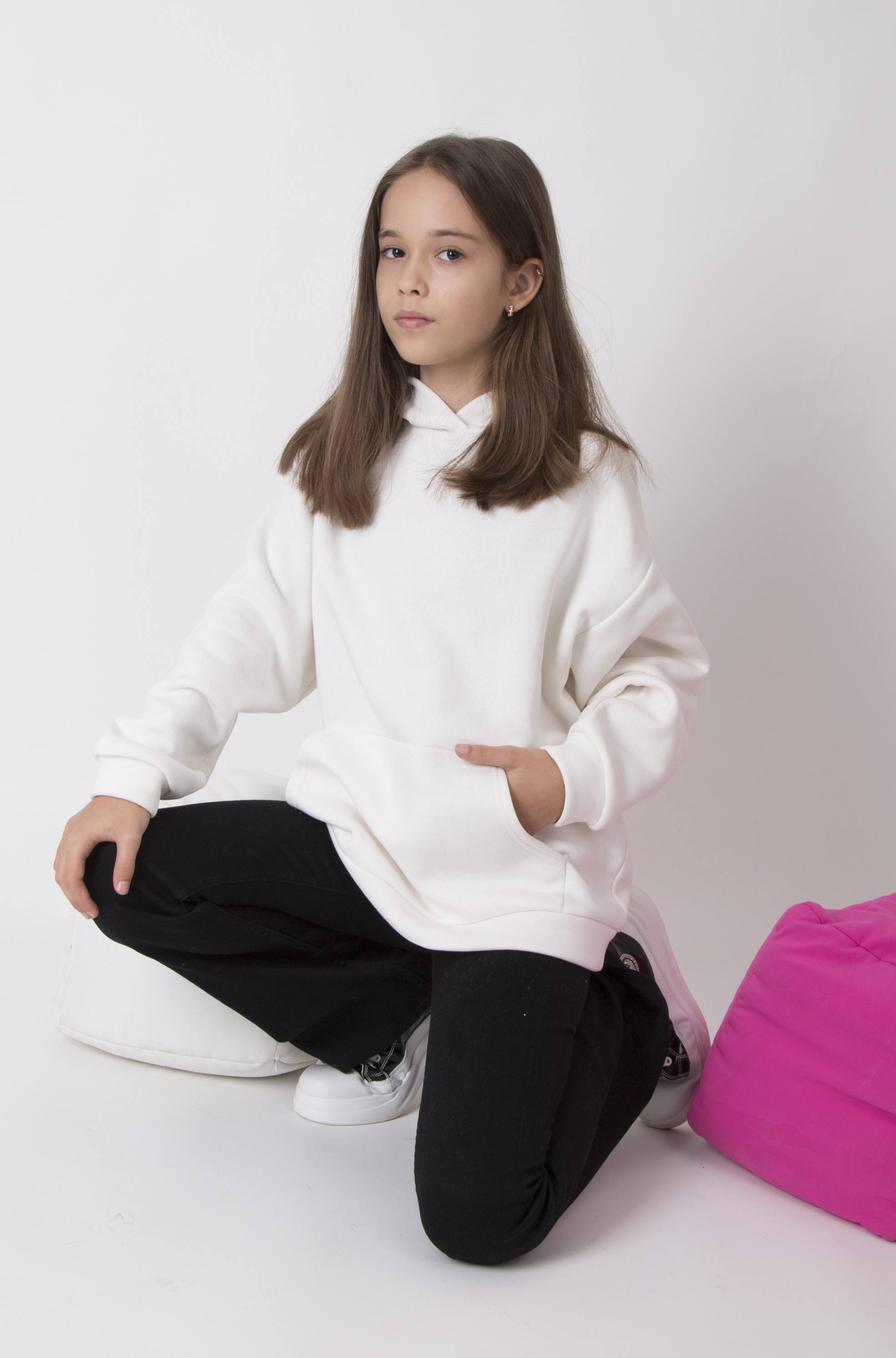 Худі з тринитка з начісом вільного крою з спереду з великою кишенею. М’яка тканина та капюшон створюють затишний і стильний повсякденний образ.