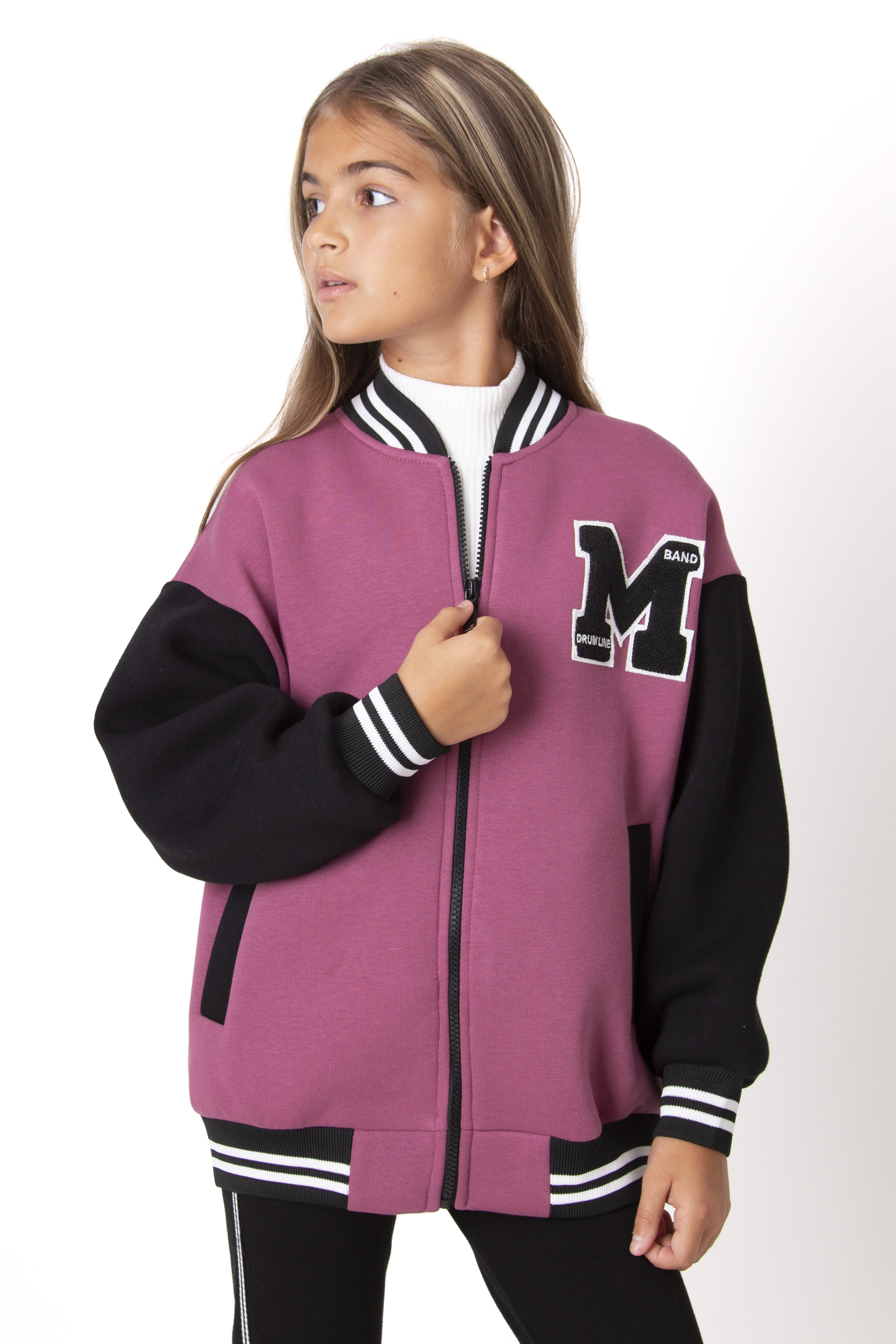 Теплий бомбер із м’якої тринитки з начосом — чудовий варіант для прохолодної погоди. Контрастні рукави й манжети з рубчика створюють виразний стильний акцент. Застібається на блискавку, має бічні кишені. У наявності в двох кольрах.