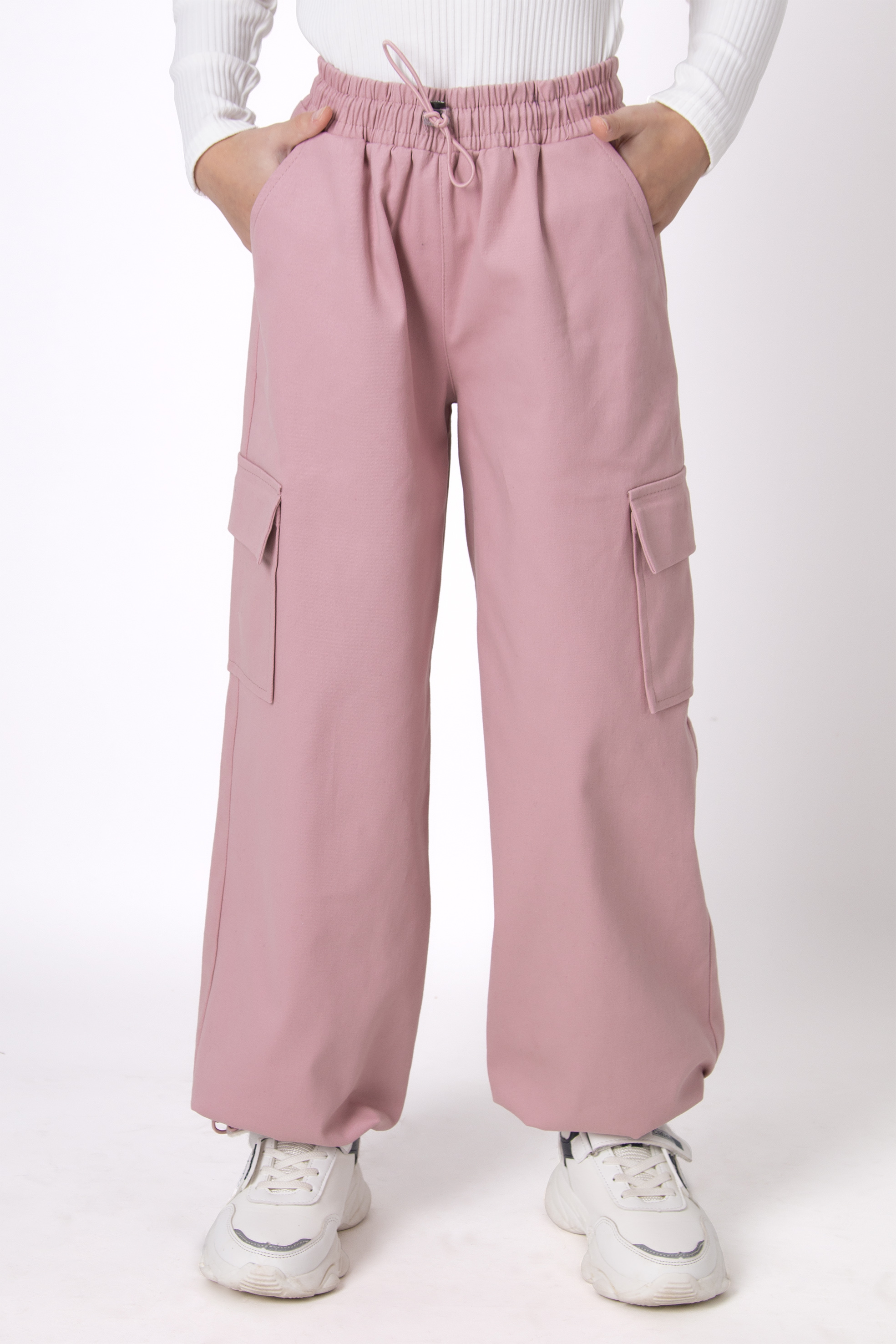 Штани-карго з широкими штанинами, зручним поясом на резинці та накладними кишенями з боків. Модель виконана з щільної тканини, яка тримає форму та виглядає стильно в повсякденних образах. Знизу є затяжки , що дозволяють носити як завʼязаними так і розвʼязаними .