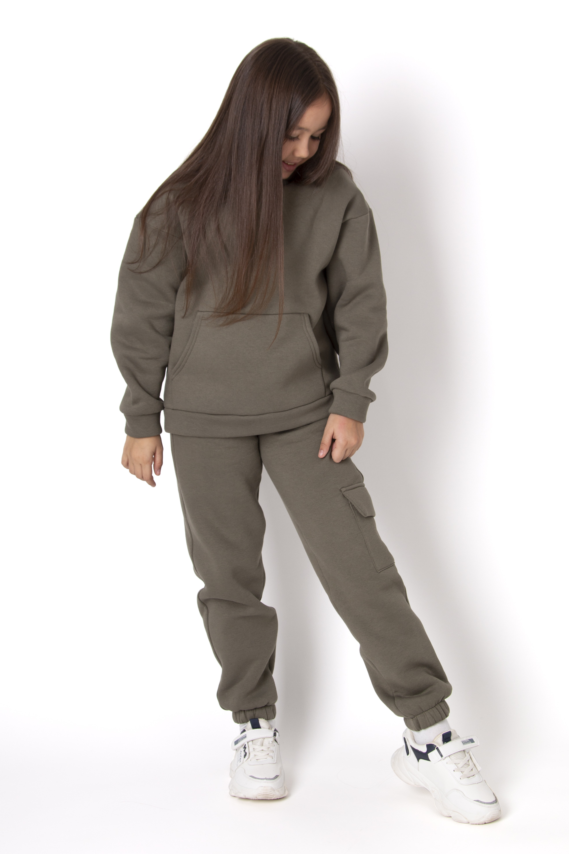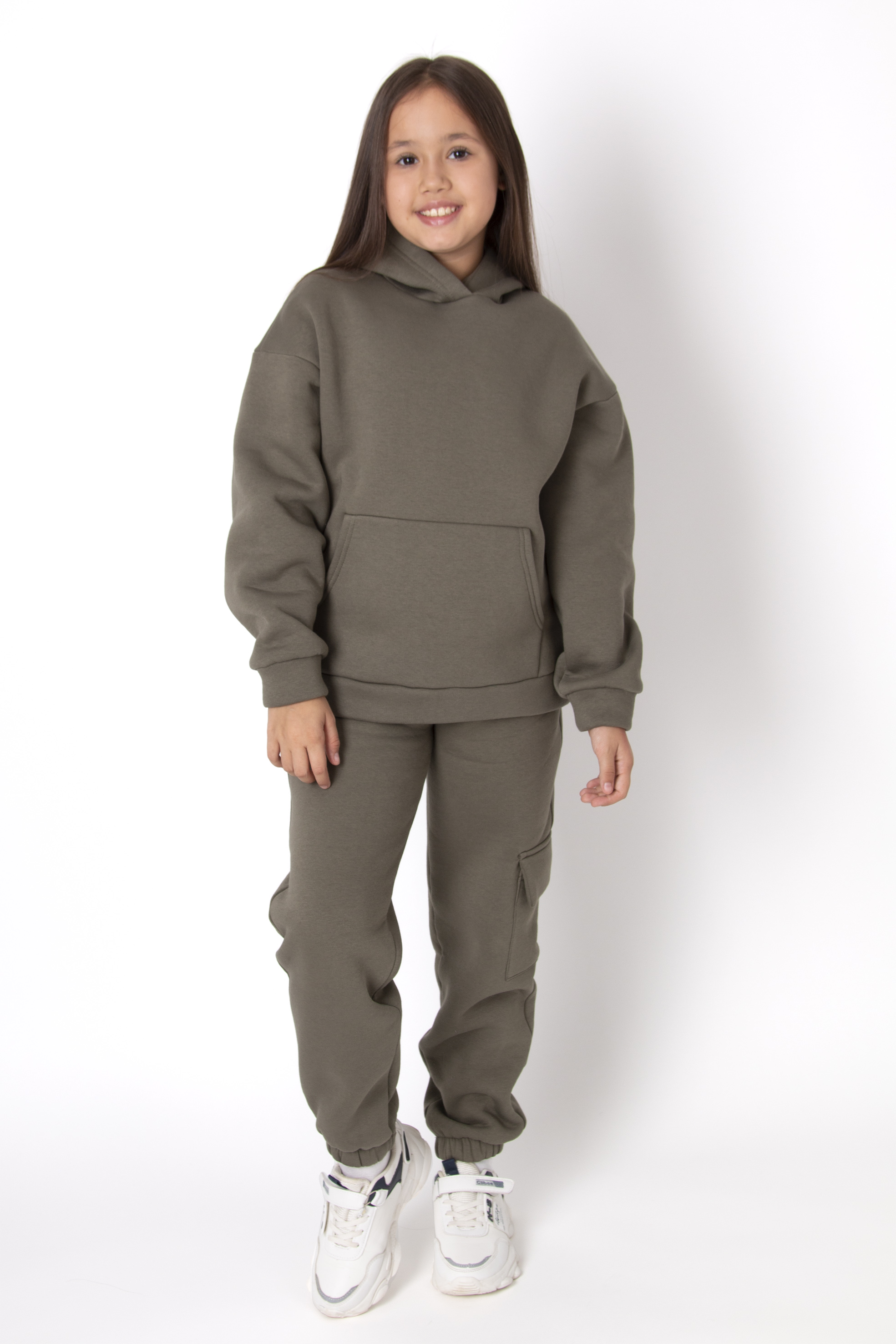 Спортивний костюм, що поєднує зручність і стиль у щоденних образах. Худі з об’ємним капюшоном та зручною кишенею-«кенгуру» доповнено штанами з накладною кишенею з боку. М’який трикотаж дарує комфорт, а продуманий крій — свободу руху.