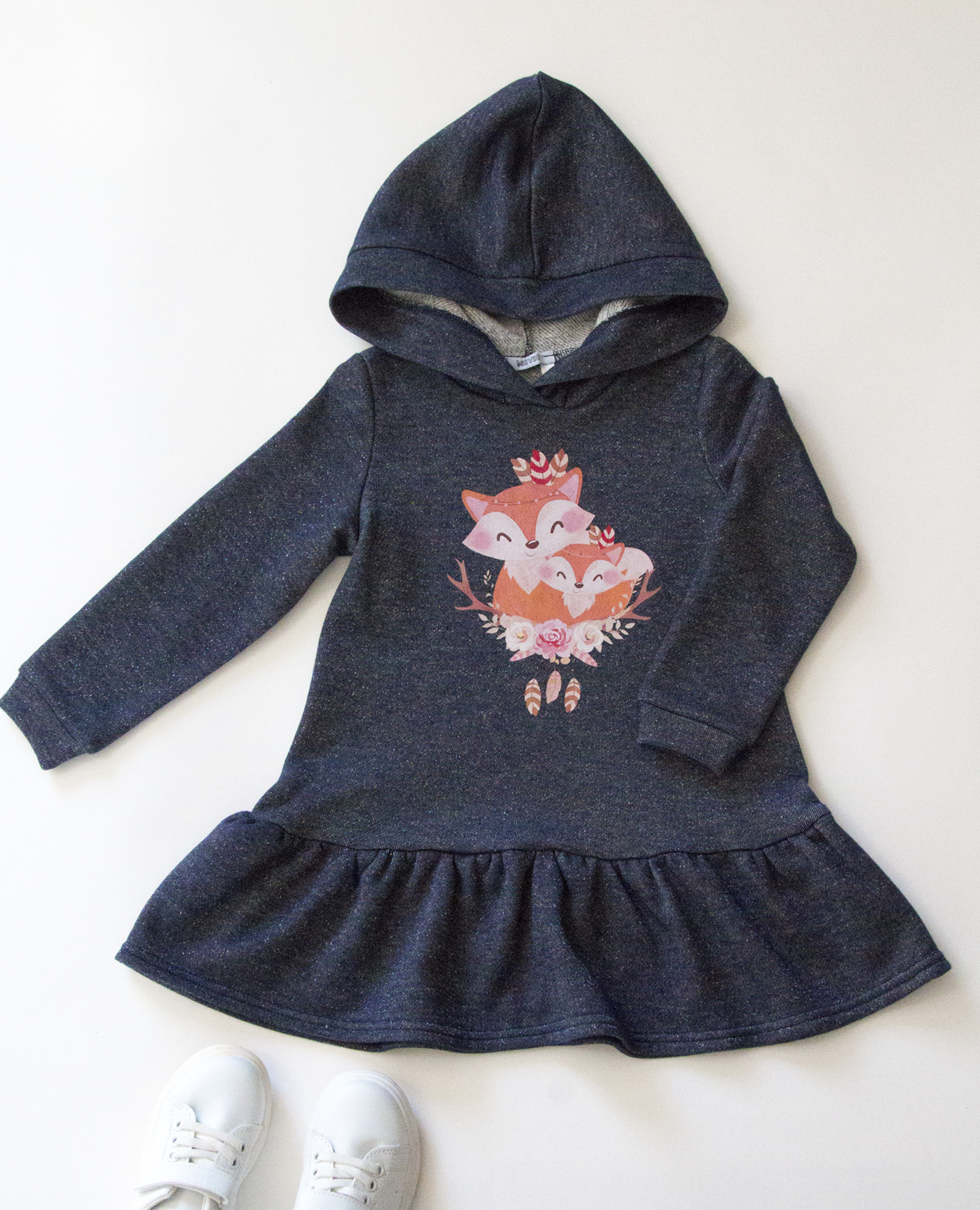 Трикотажна сукня з капюшоном — зручна й улюблена річ для щоденного гардеробу дівчинки. Модель має м’яку тканини та оздоблена яскравим принтом на грудях.