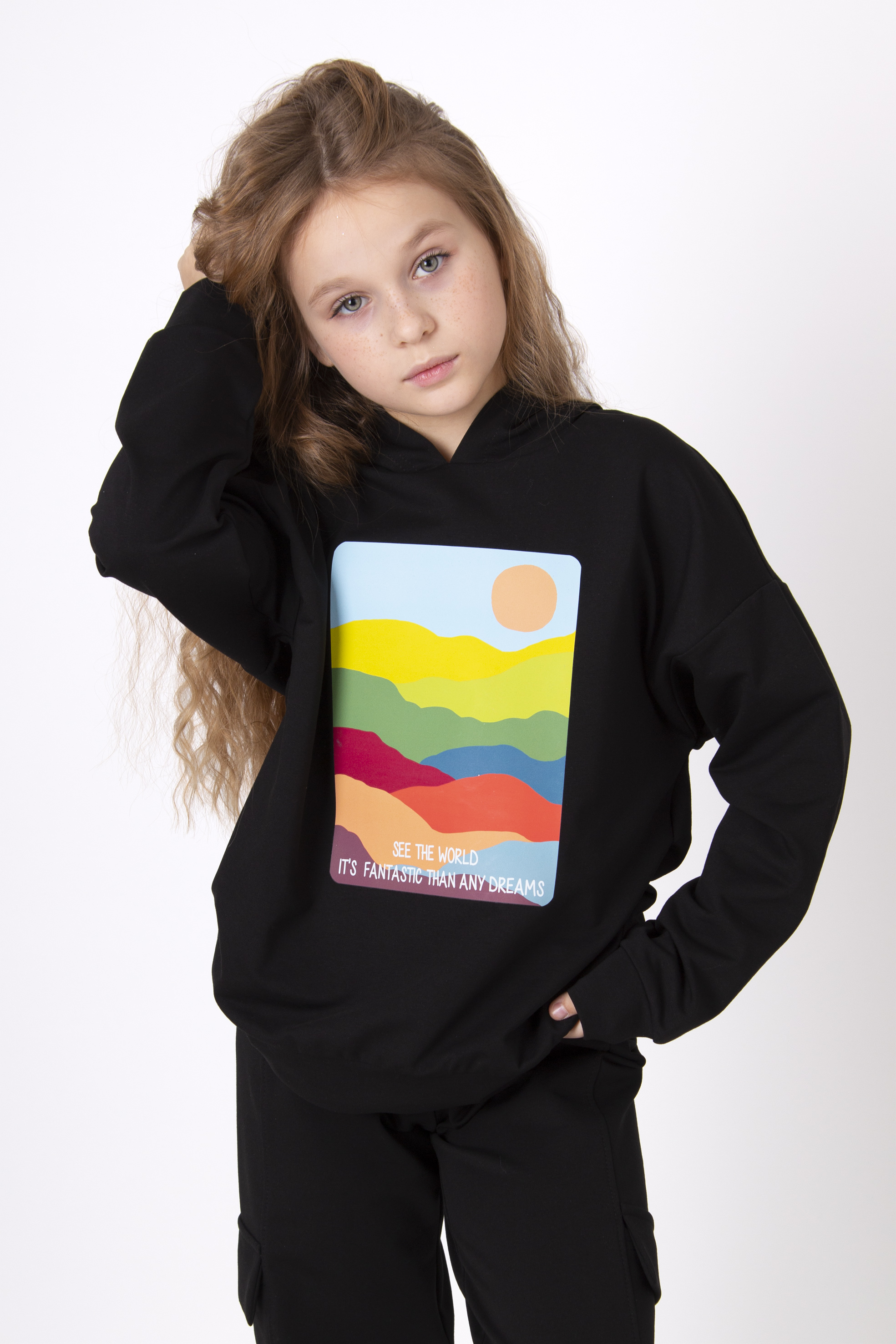 Худі з атмосферним принтом нагадує про пригоди та теплі спогади. Малюнок із силуетами гір і сонцем створює справжній настрій — у кожному кольорі своя історія. Модель має вільну посадку, спущене плече та капюшон. Добре пасує до джогерів, легінсів або штанів — ідея для щоденних образів.