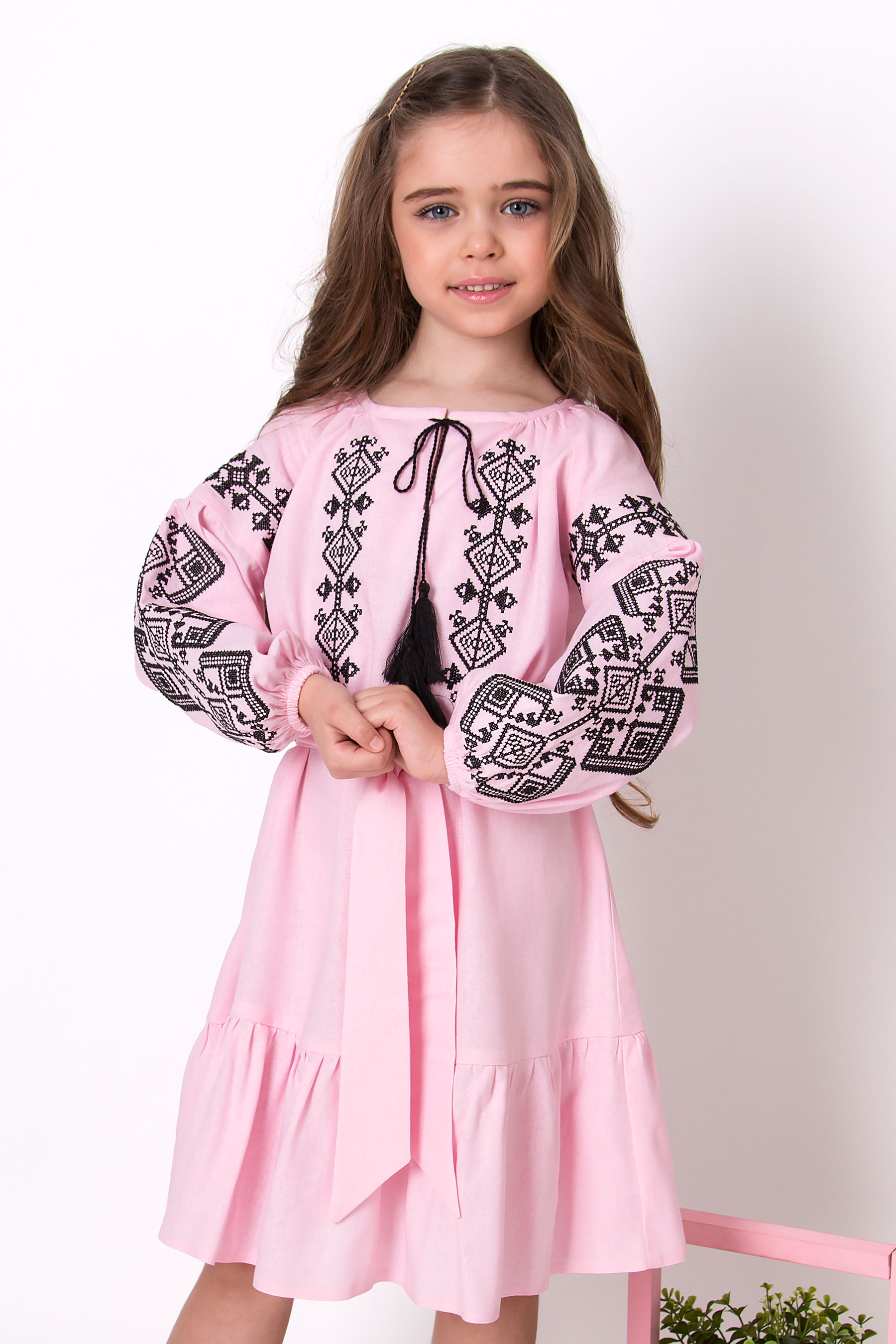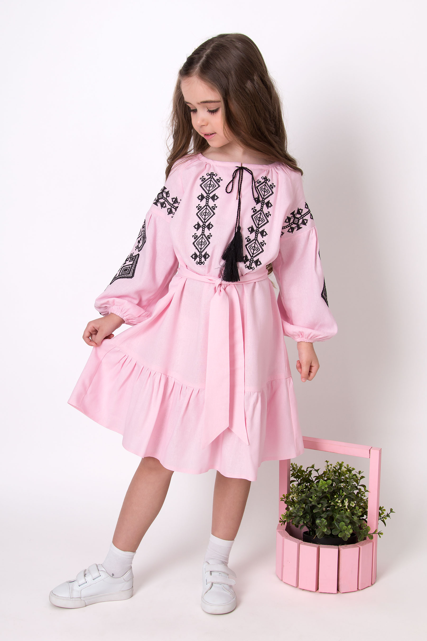 Сукня-вишиванка з льону. Модель вільного крою з поясом, що м’яко підкреслює талію. Горловина зав’язується китицями, а рукави оздоблені вишивкою з етномотивами. Легкий силует і продуманий дизайн створюють гармонійний образ для різних подій. Ця сукня поєднує традиційні символи української культури з комфортом сучасного одягу — з любов’ю до коріння і стилю.