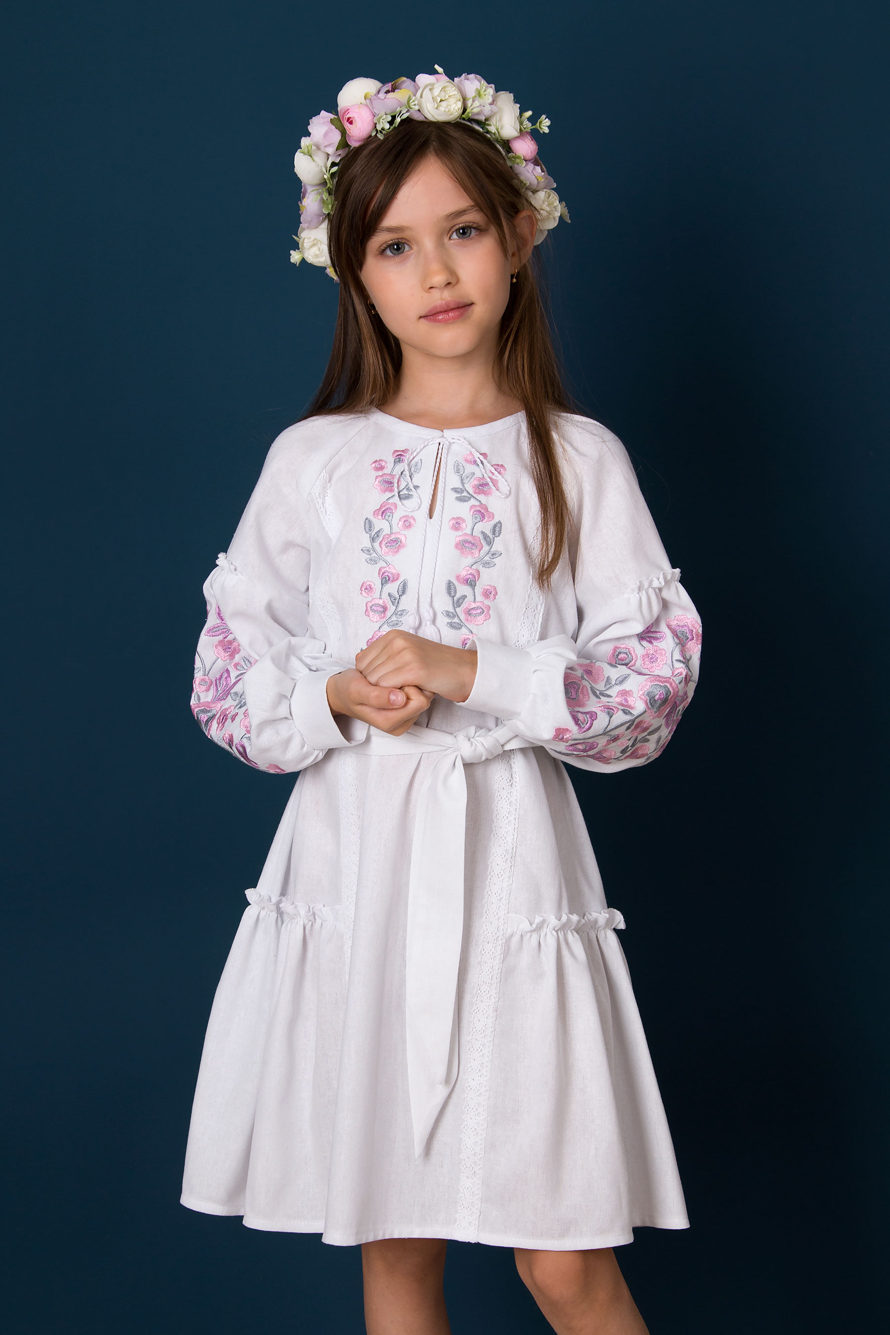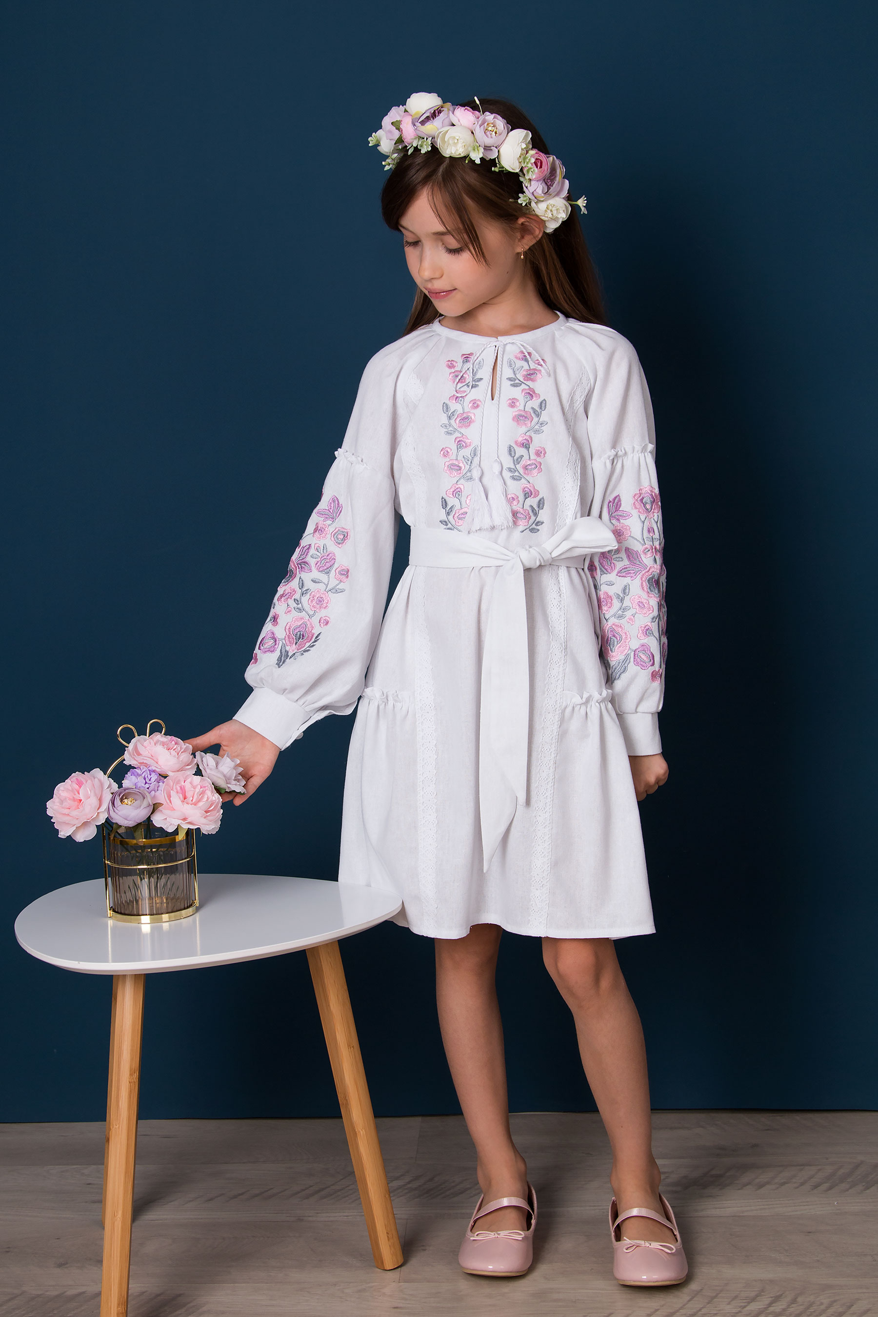 Сукня-вишиванка з льону у вільному крої з поясом, що м’яко підкреслює талію. Горловина має зав’язки з китицями, а рукави прикрашені акуратною вишивкою з етномотивами. Легкий крій і продуманий дизайн створюють ніжний, гармонійний образ для будь-якої події. Це поєднання української традиції та сучасного комфорту — сукня, у якій відчувається стиль і турбота про деталі.
