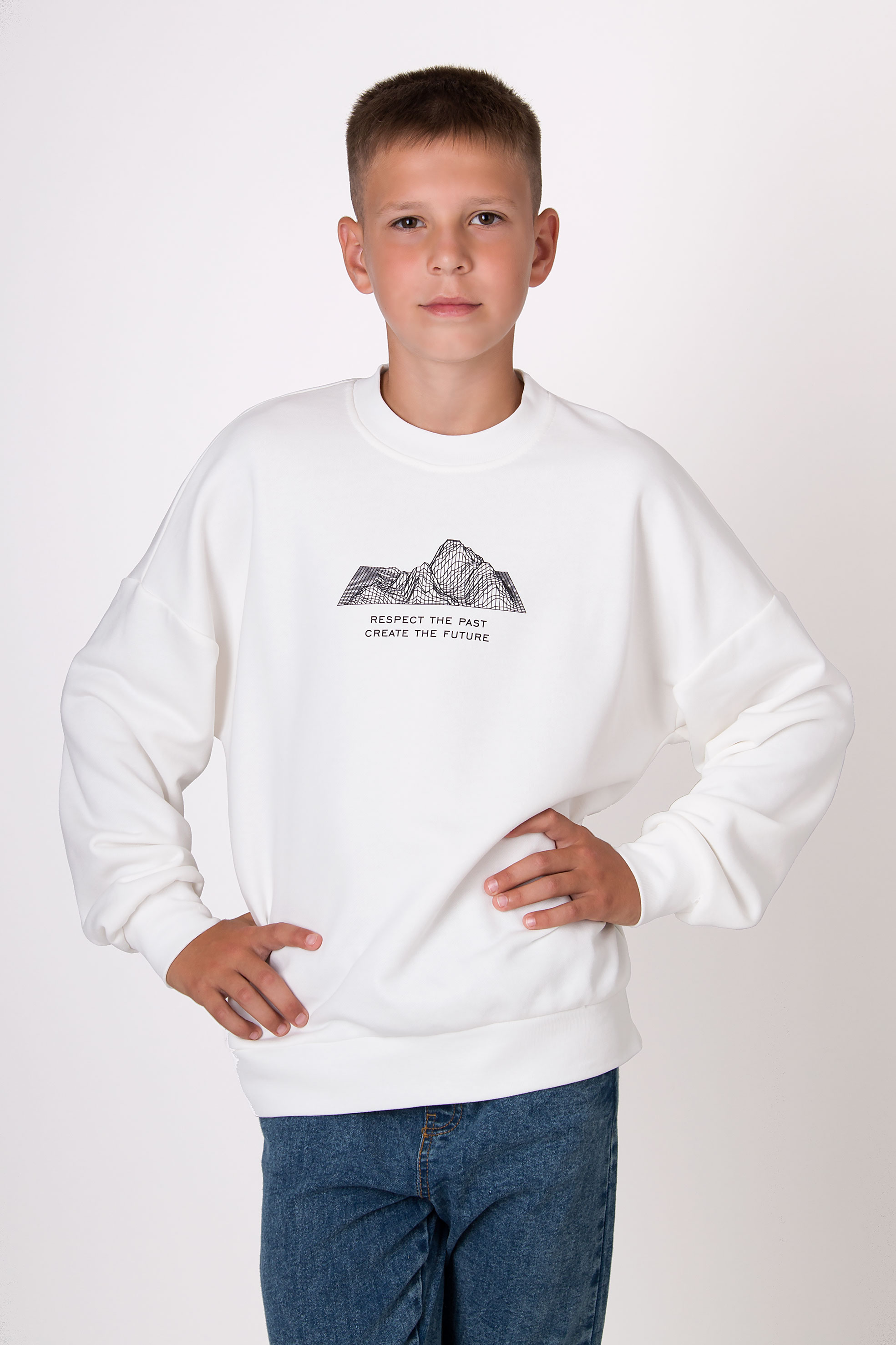 Світшот із м’якого трикотажу зі зручною посадкою та спущеною лінією плеча. Центр прикрашає принт із графічним зображенням гір та надписом. Манжети та низ на резинці — для зручності в повсякденному носінні. Добре поєднується з штанами чи спортивним низом.